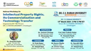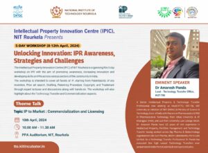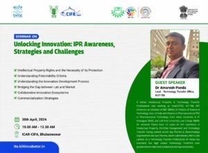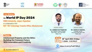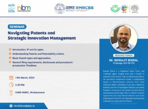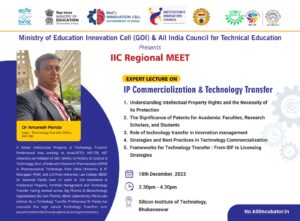 Events Unlocking Innovation: IPR Awareness, Strategies and Challenges 30 April 2024 Celebrating World IP Day 2024 26 April 2024 Celebrating World IP Day 2024 26 April 2024 Celebrating World IP Day 2024 26 April 2024 Unlocking Innovation: IPR Awareness, Strategies and Challenges 10 April 2024 The role of Technology in start-up success 27 March 2024 Intellectual Property Rights, its Commercialization and Technology Transfer 14 March 2024 Navigating Patents and Strategic Innovation Management 14 March 2024 Technology Transfer and facilitations available for Tech sourcing and Transfer 13 March 2024 Process of innovation Development, Technology readiness level (TRL) & Commercialization of Lab Technologies 06 February 2024 World IP Forum (WIPF) 2024 11 January 2024 Agenda 15th Global IP Convention 8 January 2024 Agenda ICAR - IIWM Office Bbsr 28 December 2023 Agenda Silicon Institute of Technology Bbsr 18 December 2023 Agenda Assam Down town University 13 December 2023 Agenda Assam Agricultural University 12 December 2023 Agenda The Assam Kaziranga University 11 December 2023 Agenda KIIT University,Bbsr 21 November 2023 Agenda Webinar on Basics of Patents & its Importance 19 October 2023 Agenda Revenshaw University,Cuttack September 2023 Agenda Webinar on Significance of Patents & FTO Analysis 11 October 2023 Agenda Kalinga Institute of Social Sciences (KISS) 28 February 2023 Agenda KIIT School of Applied Sciences 01 March 2023 Agenda KIIT School of Social, Financial, and Human Science 02 March 2023 Agenda National Institute of Science Education and Research (NISER) 02 March 2023 Agenda Odisha University of Technology and Research (OUTR) 03 March 2023 Agenda Central Institute of Petrochemicals Engineering and Technology (CIPET) 03 March 2023 Agenda MSCB University, Baripada 09 March 2023 Agenda KKS Women’s Autonomous College, Balasore 10 March 2023 Agenda MPC Autonomous College, Mayurbhanj 11 March 2023 Agenda KSBT KIIT DU 21- 22 March 2023 Agenda Dibrugarh University 03 April 2023 Agenda Gauhati University 04 April 2023 Agenda Institute of Advanced Study in Science & Technology (IASST) 04 April 2023 Agenda IIT Guwahati 05 April 2023 Agenda National Institute of Pharmaceutical Education & Research (NIPER) 05 April 2023 Agenda Assam University 06 April 2023 Agenda National Institute of Technology (NIT), Silchar 06 April 2023 Agenda Load More